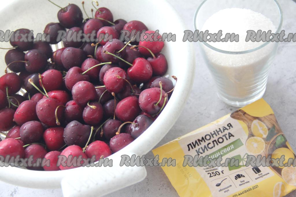 Предлагаю приготовить на зиму очень вкусный, красивый компот из черешни с косточками с добавлением лимонной кислоты. После того как откроете банку, этот компот можно пить сразу, не разбавляя водой. Я предпочитаю его подавать охлаждённым, дополнив кубиками льда. Из указанных в рецепте ингредиентов получается 3 банки по 800 миллилитров яркого черешневого компота.