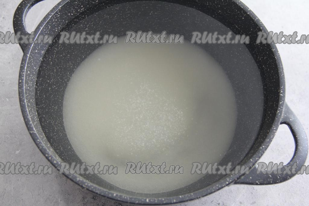 После того как сироп в кастрюле закипит, уменьшить огонь, перемешать сироп и проварить его 2-3 минуты (до полного растворения сахара).