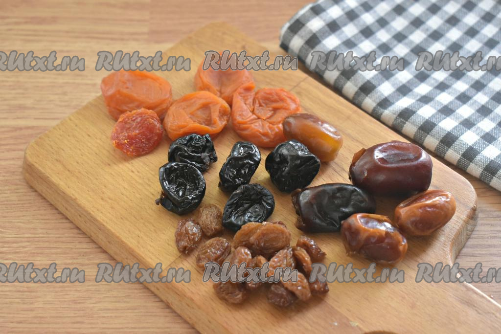 Курагу, чернослив и финики нарезаем на небольшие кусочки.