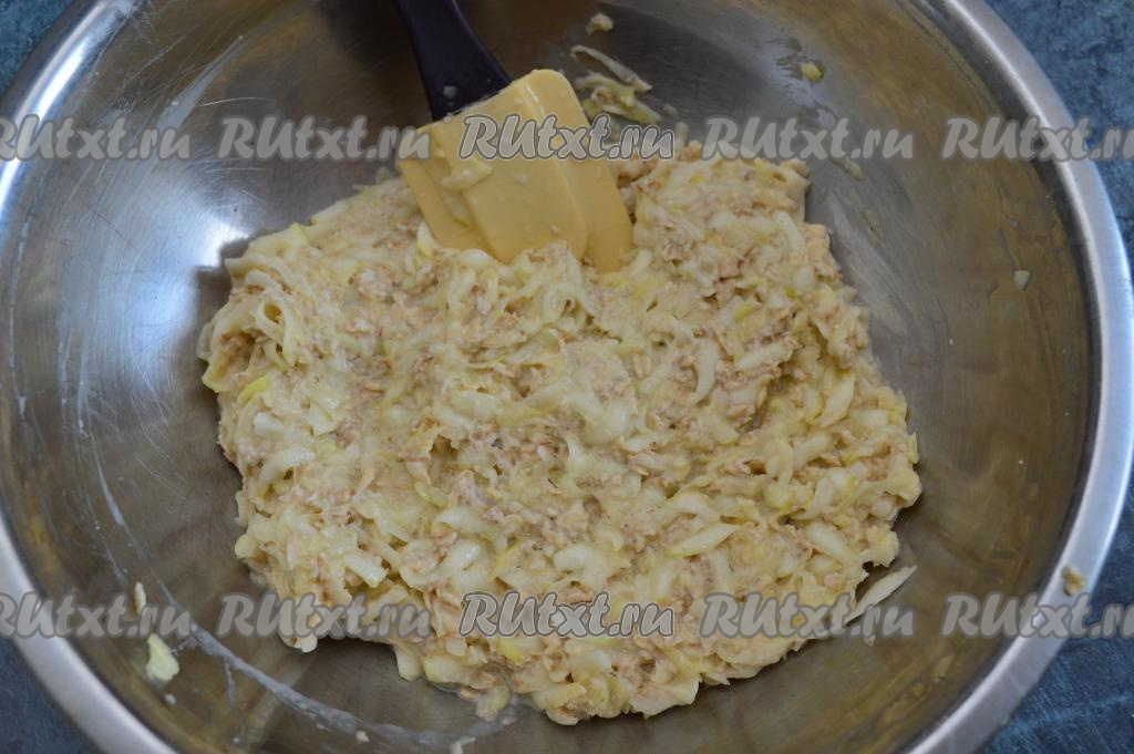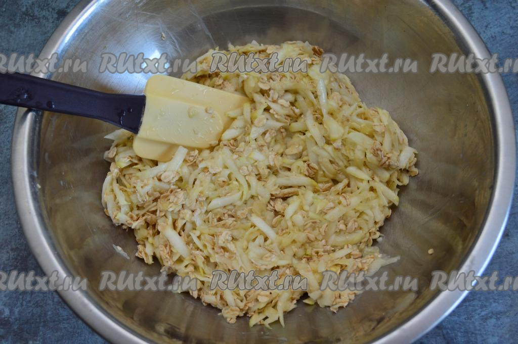 Овсяные хлопья хорошо набухнут. В течение 1 минуты перемешать кабачково-овсяную массу, чтобы овсяные хлопья как следует смешались с кабачком.