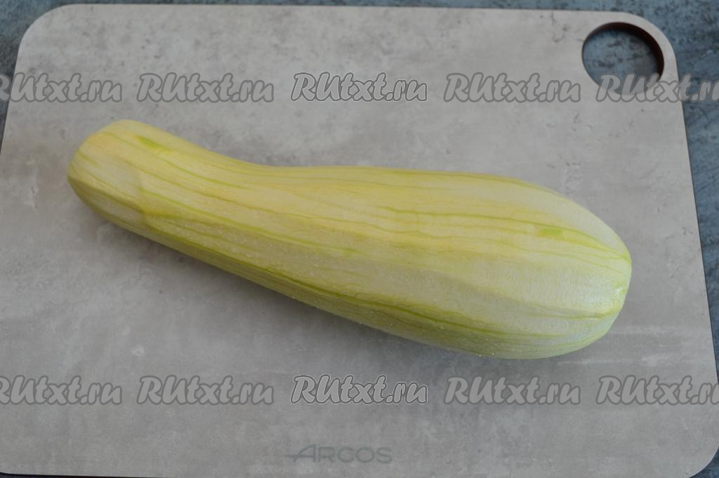 У кабачка отрезать кончики и очистить его от кожуры. Если косточки крупные их нужно удалить. Для приготовления оладий нам понадобится примерно 500 грамм очищенного кабачка.