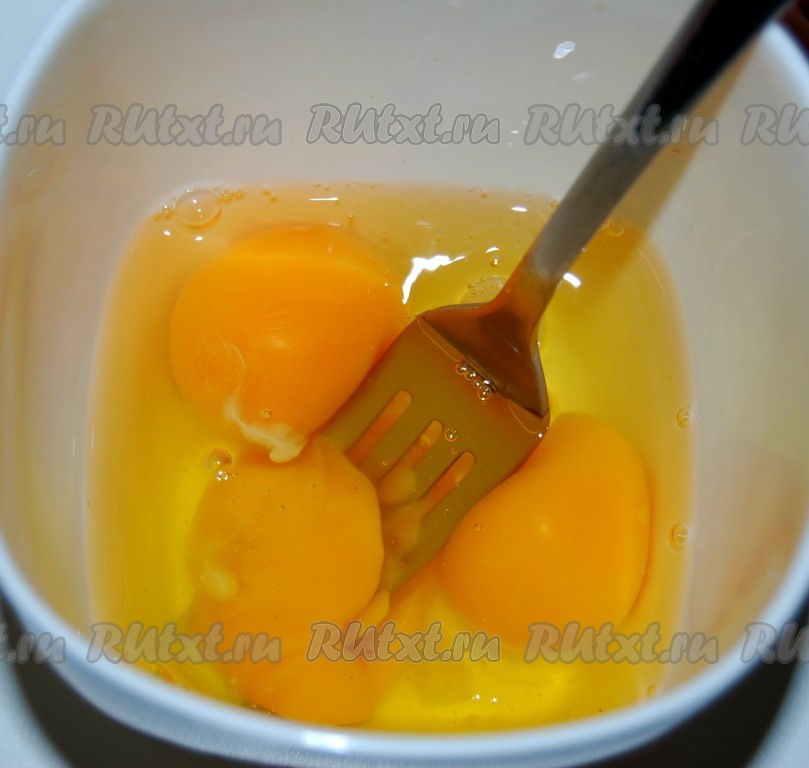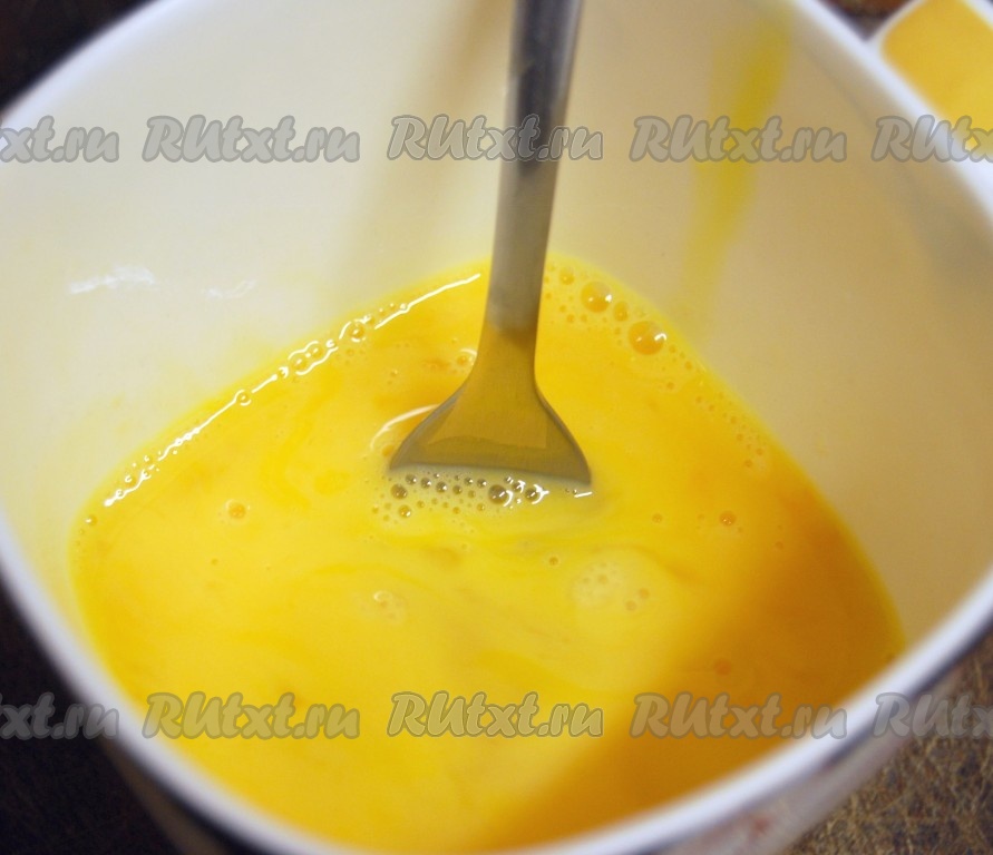 Разбить в чашку яйца и взболтать их вилкой, посолить, поперчить.
