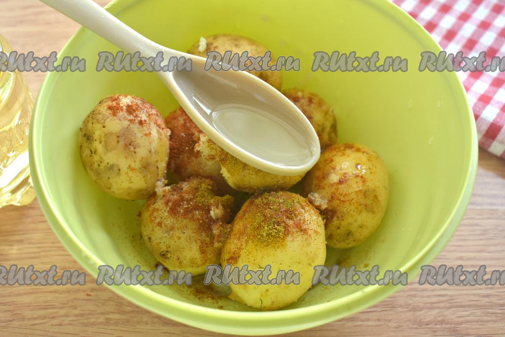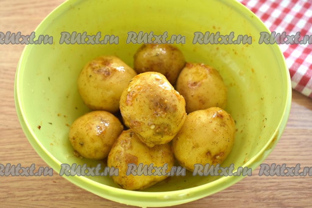 Тщательно перемешиваем, покрывая каждый клубень со всех сторон специями и маслом.