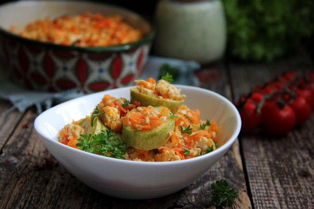 Предлагаю рецепт сочного, сытного блюда к повседневному обеду или ужину. Готовить будем в духовке кабачки, нарезанные кружочками, под слоем из фарша, предварительного обжаренного с овощами. Блюдо получается очень вкусным и ароматным. Фарш можно взять любой, я взяла куриный. Вкусно, аппетитно и сытно, попробуйте!