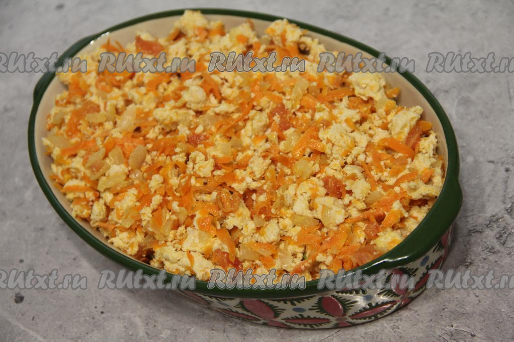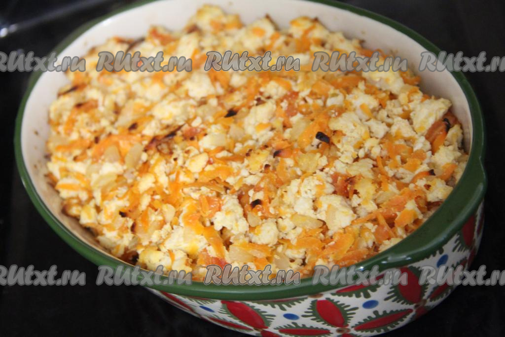 К обжаренным овощам выложить фарш.