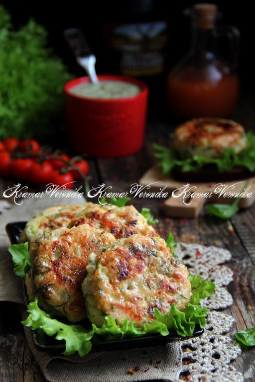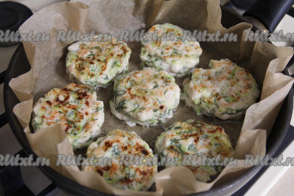 Жарить курино-кабачковые котлетки на среднем огне с двух сторон до золотистого цвета.