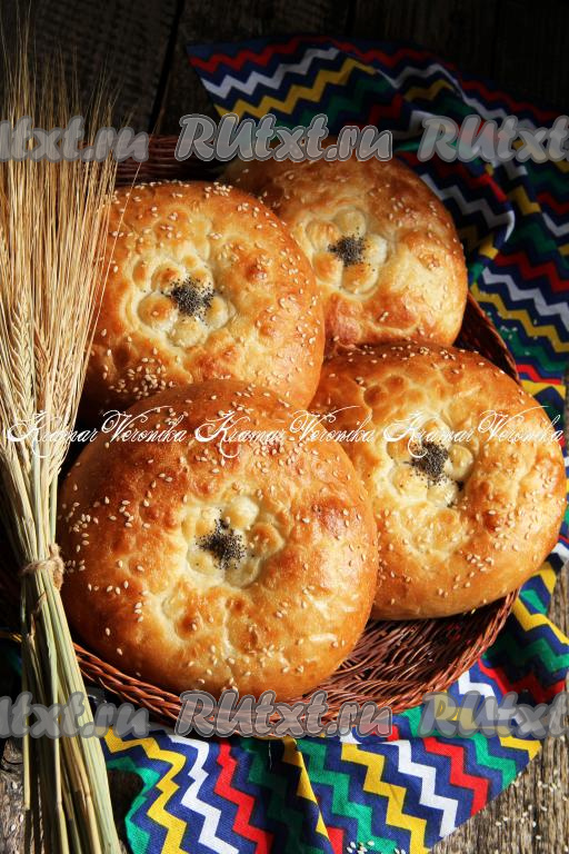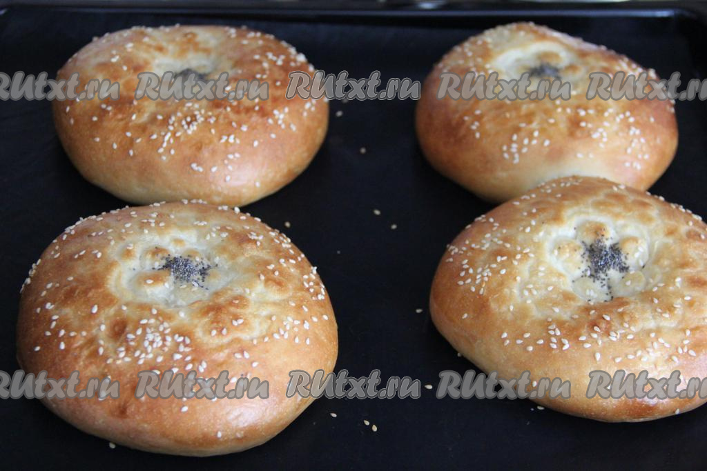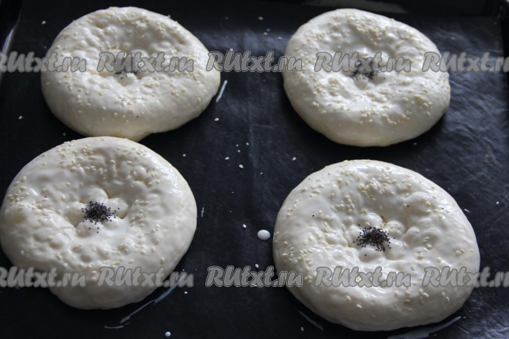 Выпекать узбекские лепёшки в разогретой духовке минут 20 (до золотистого цвета) при температуре 180 градусов.