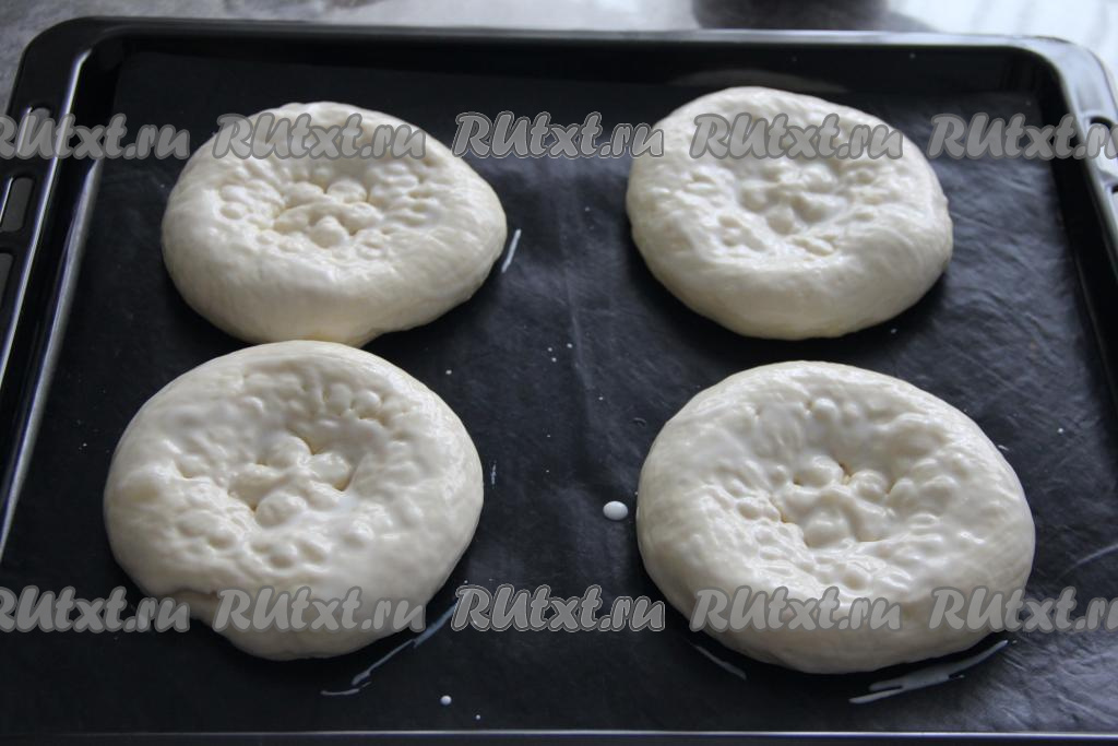 Лепёшки должны получиться с пышным бортиком и вдавленной серединкой.