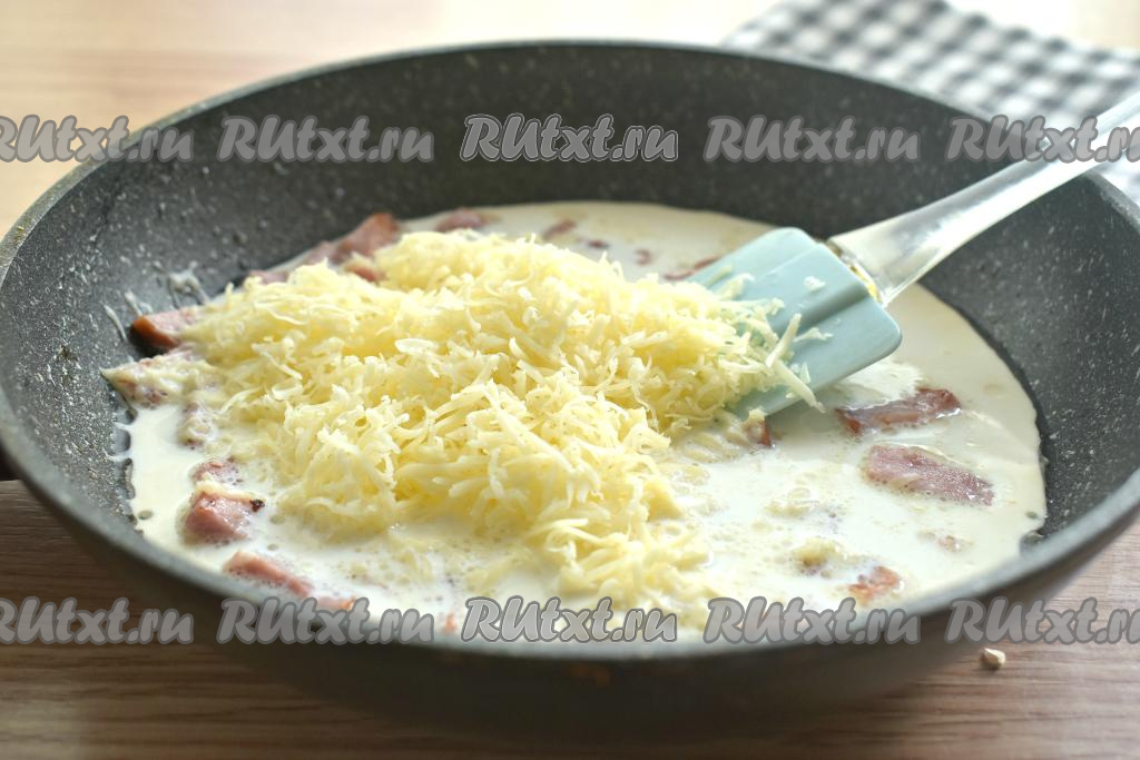 Сразу добавляем сыр, натёртый на мелкой тёрке.