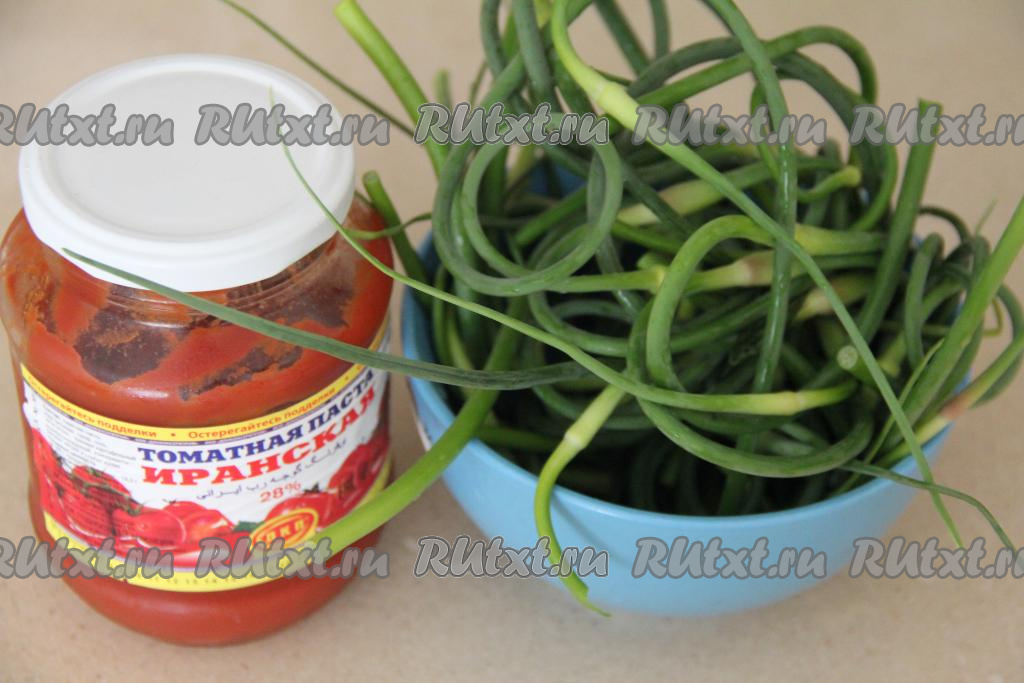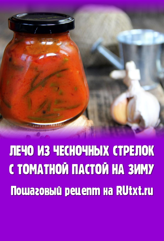 Из стрелок чеснока можно приготовить немало интересных блюд, в том числе и заготовок. Предлагаю сварить на зиму лечо из чесночных стрелок с добавлением томатной пасты. Лечо готовится просто, получается вкусным, ароматным и аппетитным. Стрелки чеснока хорошо пропитываются томатным маринадом. Такое лечо можно подать в качестве дополнения к гарнирам (например, к отварной картошке) или различным мясным блюдам. Хранить эту яркую заготовку лучше в прохладном месте (например, в погребе или кладовке). Из указанного количества ингредиентов получается 2 баночки по 200 миллилитров отличного лечо из стрелок чеснока.
