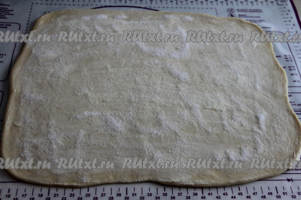 Тесто, смазанное маслом, присыпать сверху 2 столовыми ложками сахара.