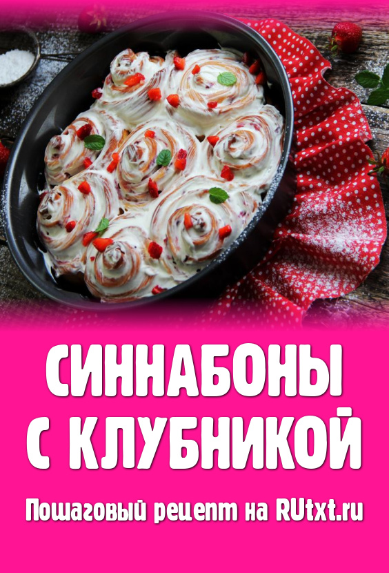 Для приготовления крема творожный сыр смешать с сахарной пудрой. Достать готовые синнабоны с клубникой из духовки и сразу смазать приготовленным творожным кремом. Подать воздушные, вкусные, аппетитные булочки в тёплом виде.
