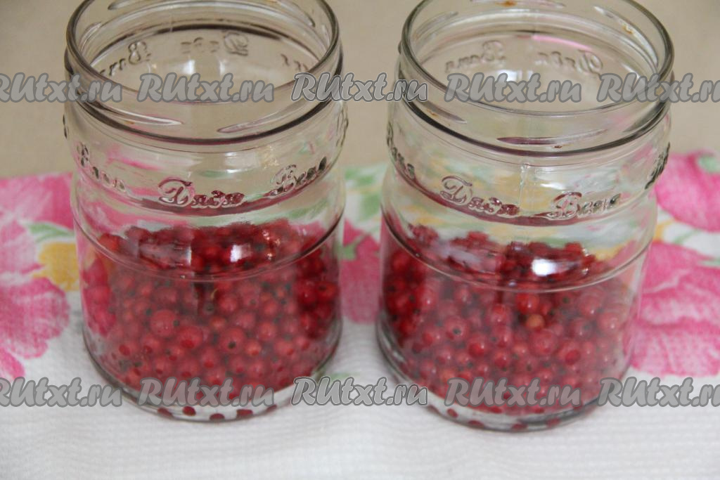 В каждую простерилизованную банку выложить 250 грамм красной смородины.