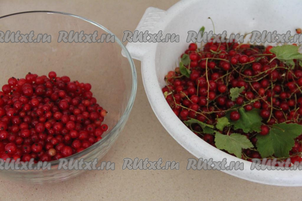 Красную смородину перебрать, удалить веточки, промыть ягоды водой. Затем переложить 500 грамм красной смородины в дуршлаг, чтобы стекла лишняя вода.
