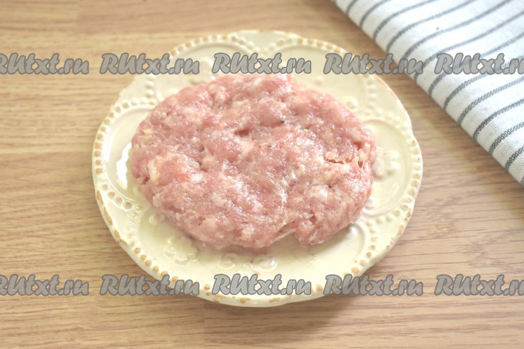 Делим фарш на 6 равных частей. Из каждой части фарша формируем лепёшку.