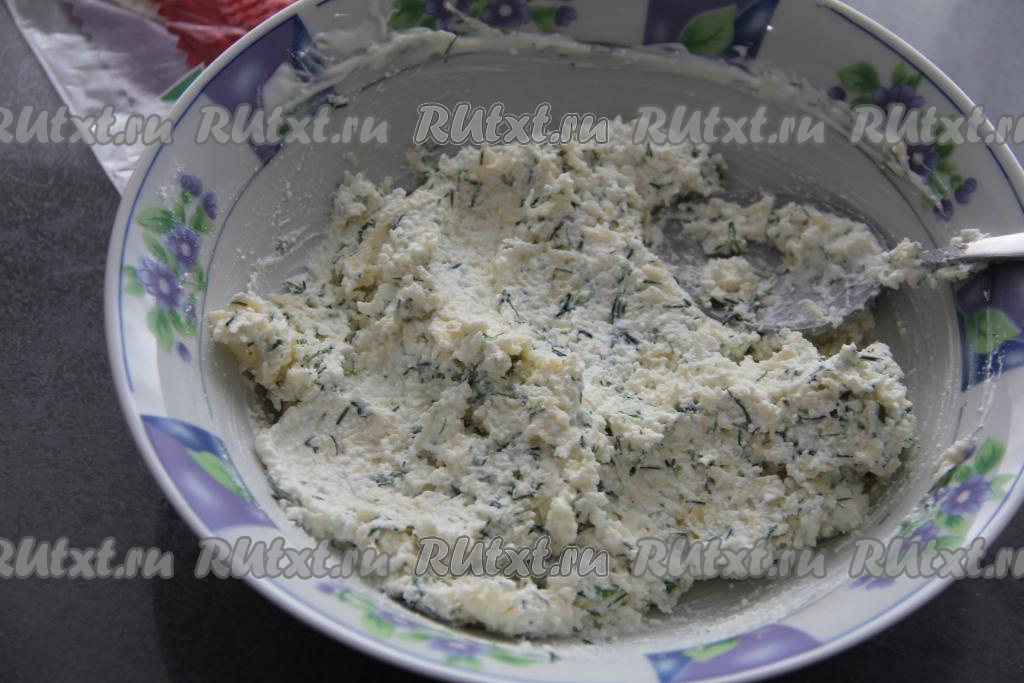 Перемешать творожно-сырную массу до однородности и начинка для тортильи готова.