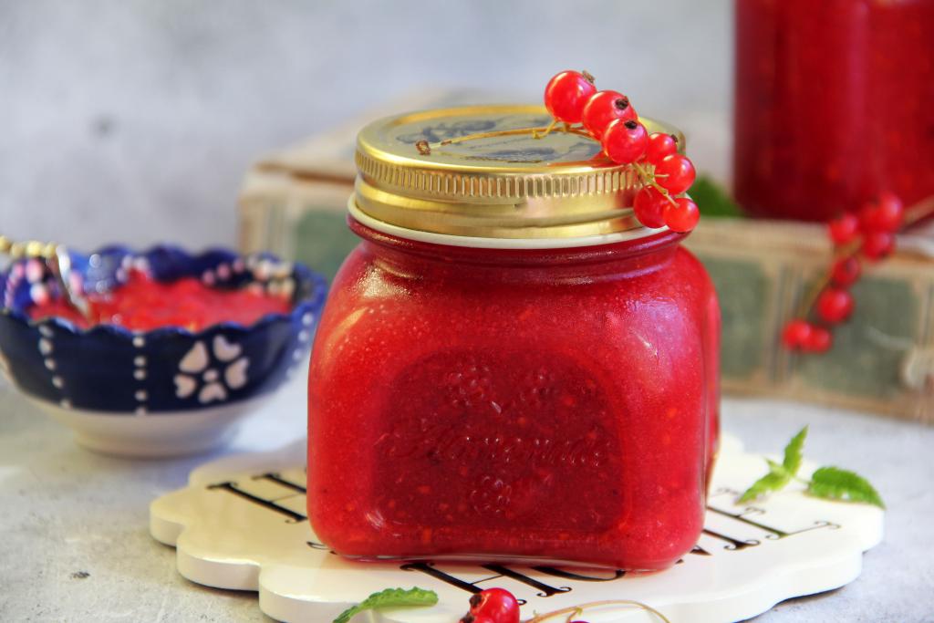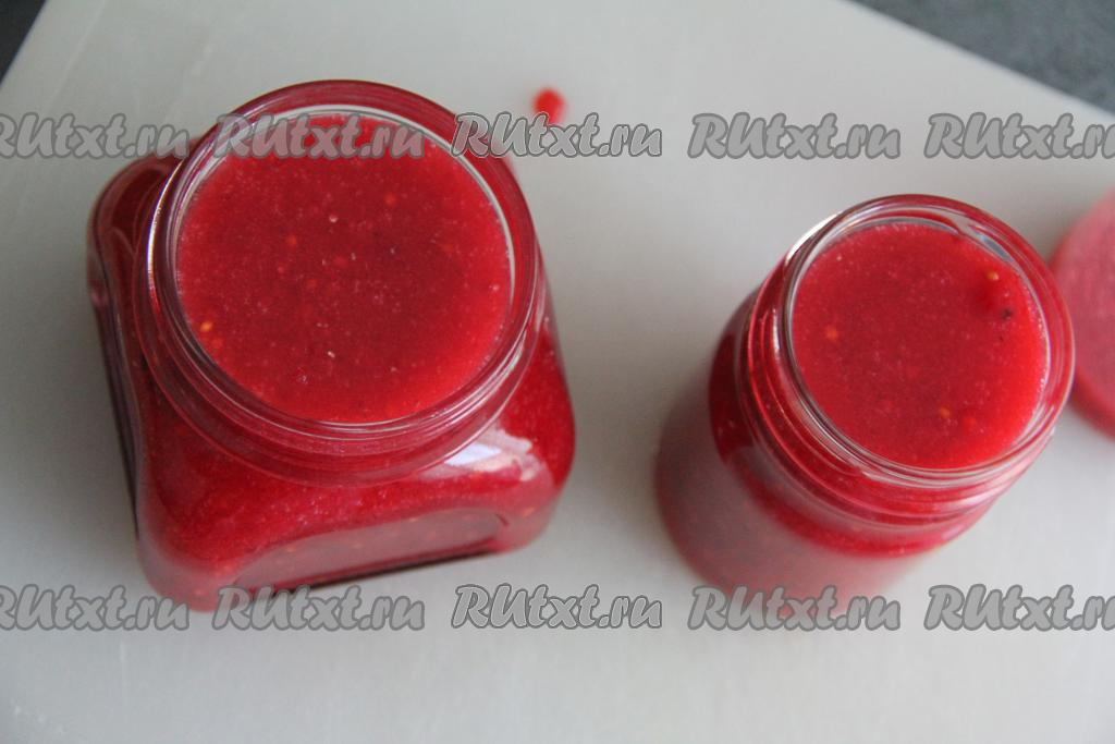 Банки (я взяла банку объёмом 300 миллилитров и баночку объёмом 200 миллилитров) простерилизовать (я стерилизую над паром), крышки прокипятить, затем обсушить баночки и крышки. Разложить ягодную массу по подготовленным банкам, закрутить крышками и убрать в холодильник на хранение.