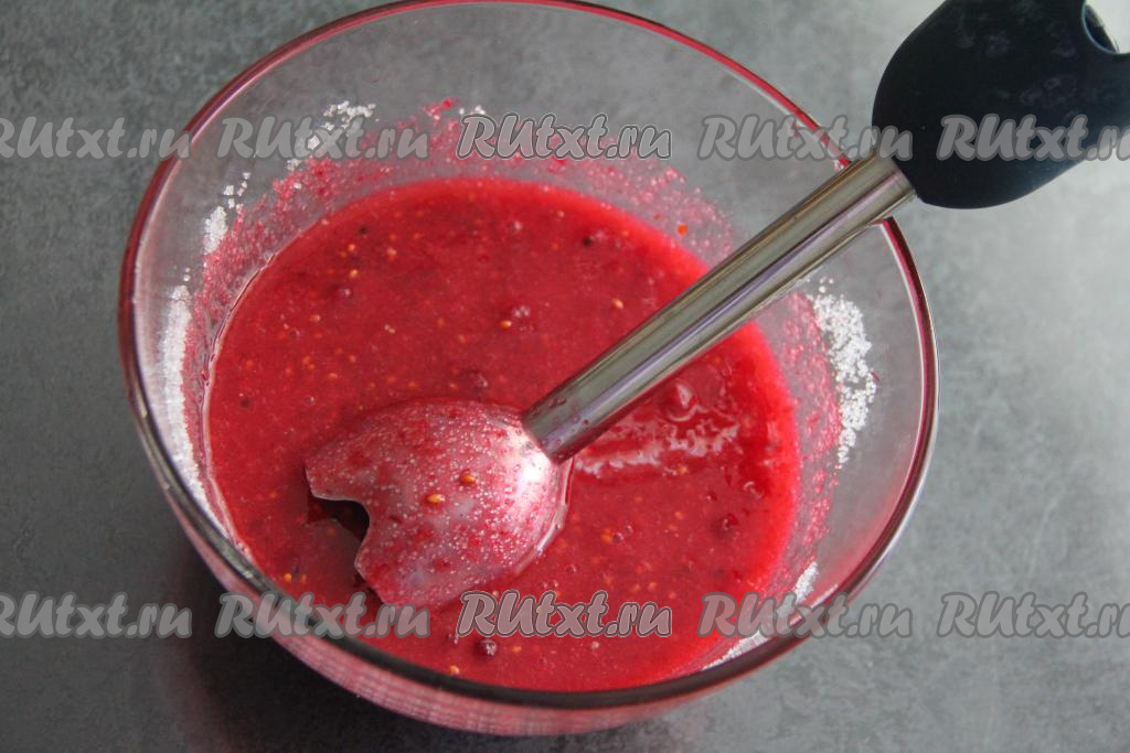 Пробить красную смородину с сахаром погружным блендером.
