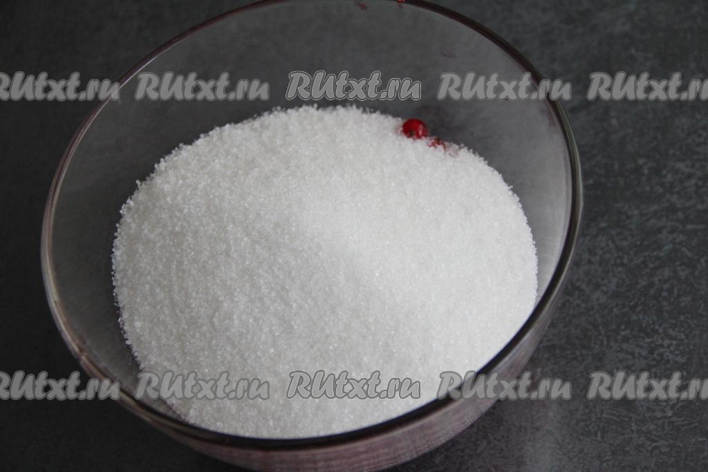 Затем пересыпать красную смородину в достаточно объёмную сухую миску, всыпать сахар.