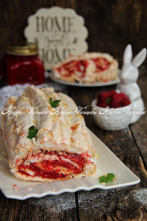Воздушный, нежный меренговый рулет можно подать и к семейному чаепитию, и к праздничному столу. Готовится в домашних условиях он несложно, начинки могут быть различными. В этот раз предлагаю приготовить меренговый рулет с начинкой из малины. Рулет получается просто потрясающим: нежным, воздушным и ароматным. Малиновую начинку лучше сделать заранее, чтобы она успела остыть и желироваться. Сформированный меренговый рулет можно нарезать и подавать к столу через два часа после формирования.