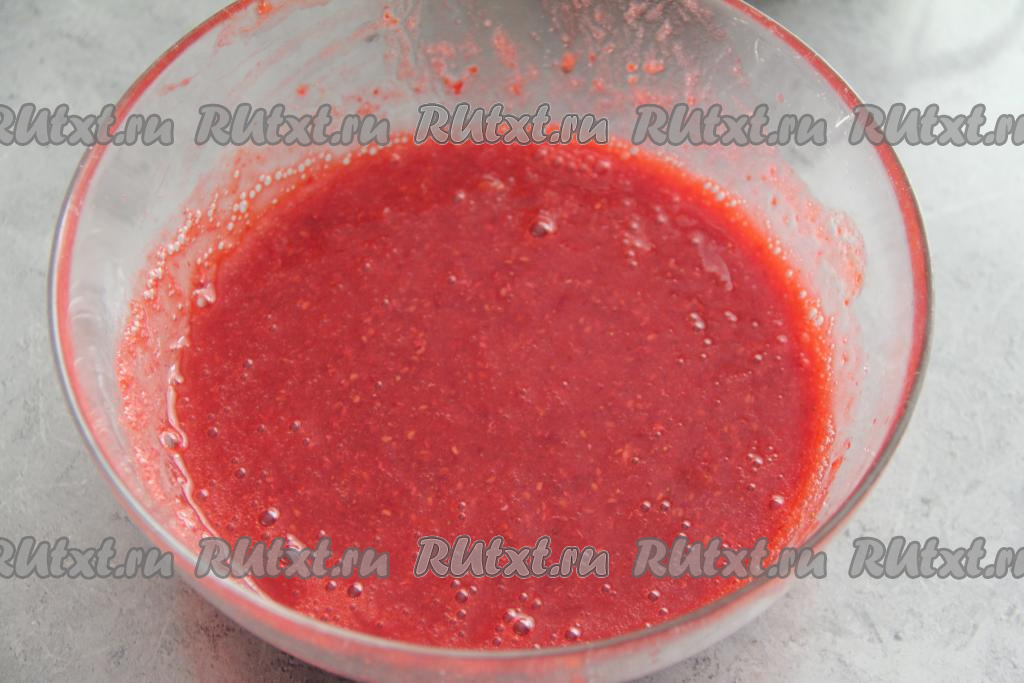 Подготовленную малину пробить погружным блендером до однородности.