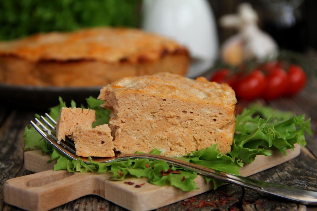 Затем вкусный, воздушный куриный пудинг достать из духовки, переложить на тарелку, нарезать на кусочки и подать к столу.