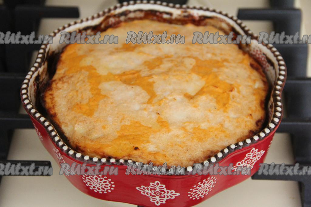Поставить форму в разогретую духовку и готовить куриный пудинг минут 20-25 при температуре 190 градусов.