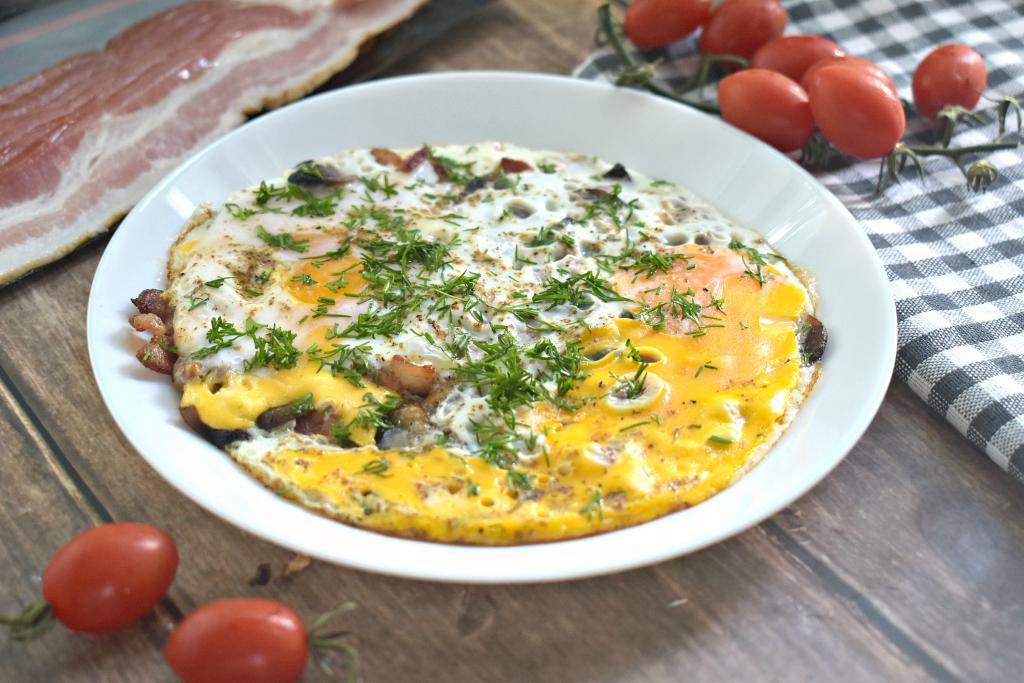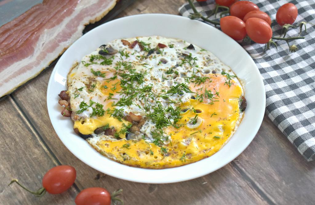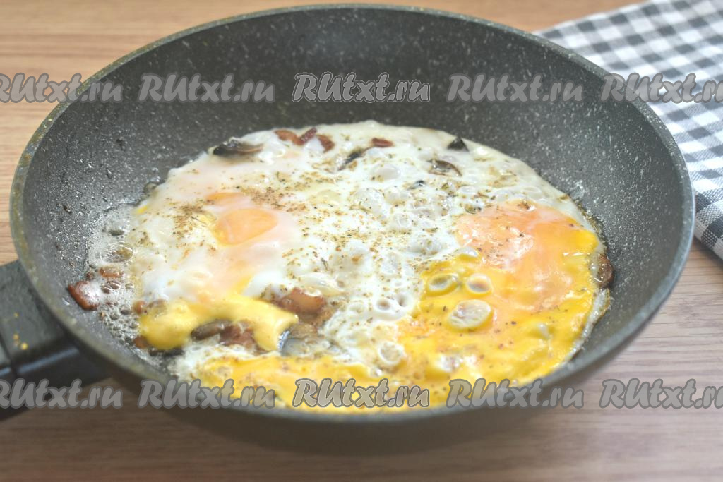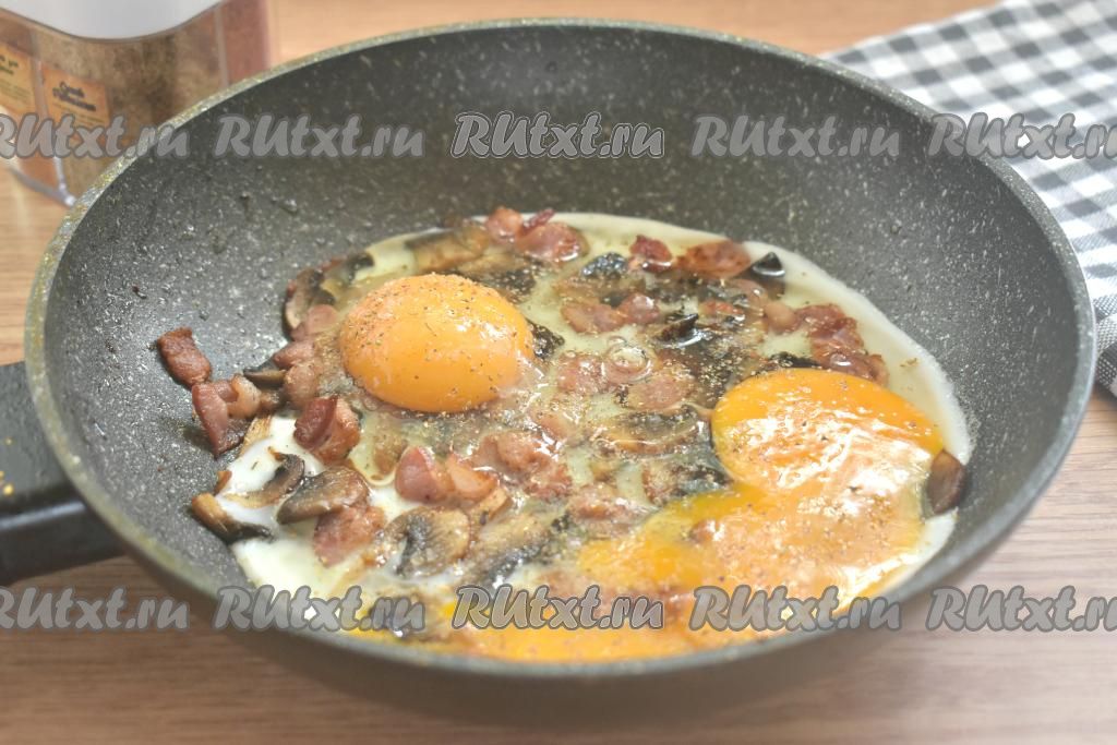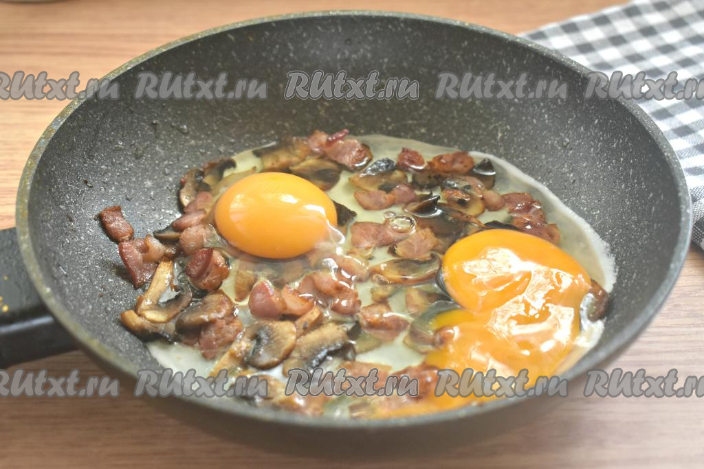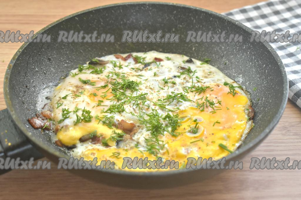 Яичница, приготовленная с грибами и беконом, станет отличным завтраком, который зарядит вас энергией и порадует насыщенным вкусом.