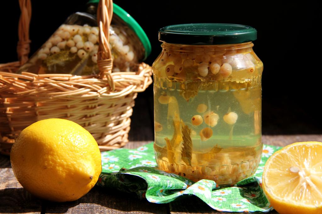 В банки с белой смородиной, мятой и лимоном влить горячий сироп. Сразу закрутить банки с компотом крышками, перевернуть кверху дном, укутать со всех сторон в одеяло и в таком виде оставить до полного остывания. Полностью остывшие банки убрать на хранение в погреб, кладовку или другое прохладное место.