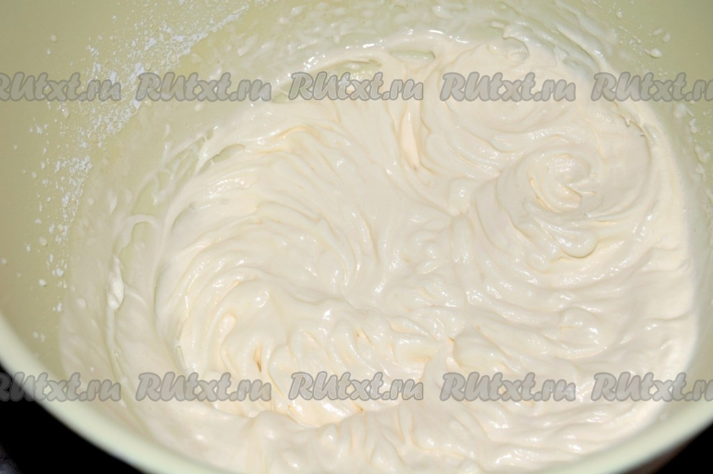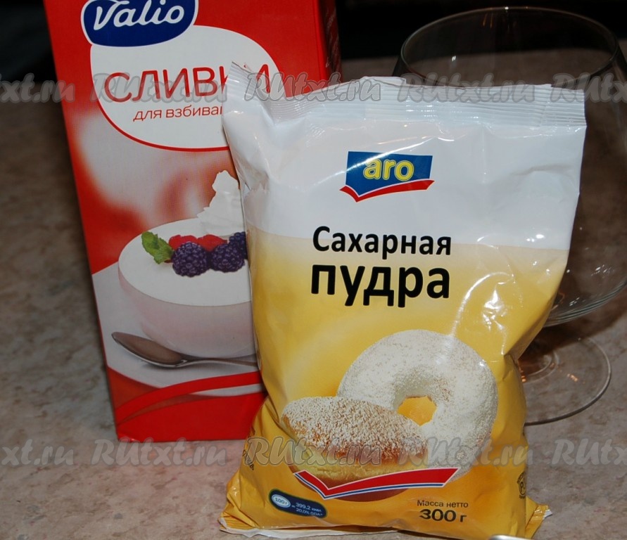Взбить сливки с сахарной пудрой до кремообразного состояния.