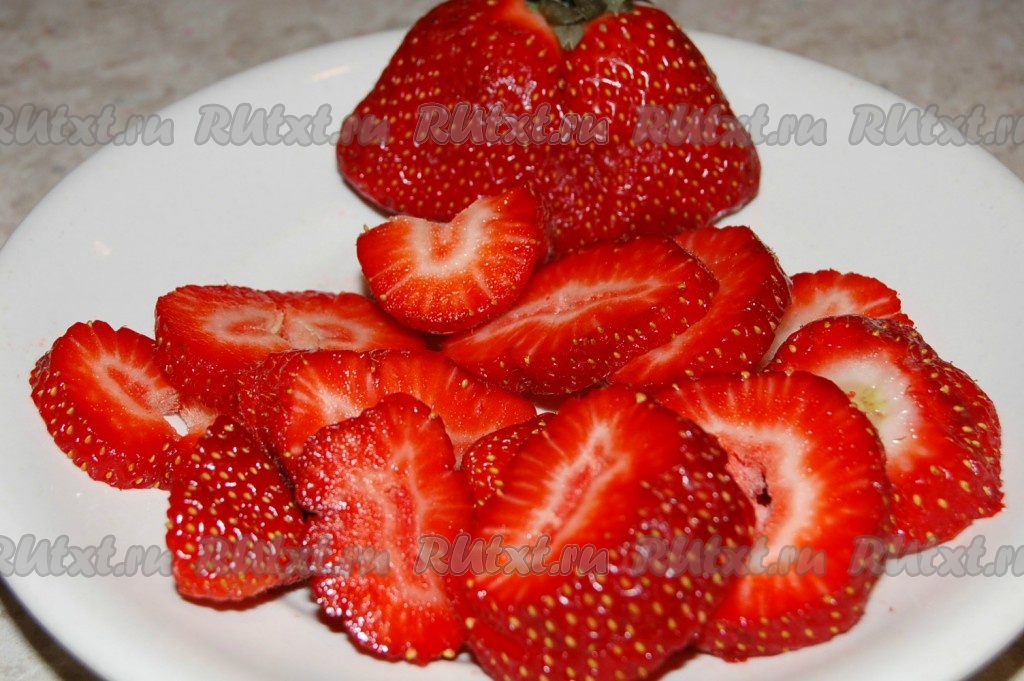 Нарезать клубнику на дольки.
