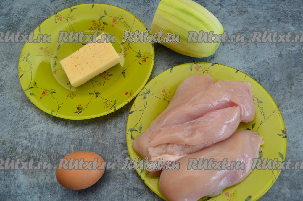 Подготовить продукты. Кабачок вымыть, очистить от кожуры, если косточки крупные, их нужно будет удалить. Взвесить подготовленный кабачок. Нам потребуется примерно в два раза меньше очищенного кабачка, чем куриного филе.