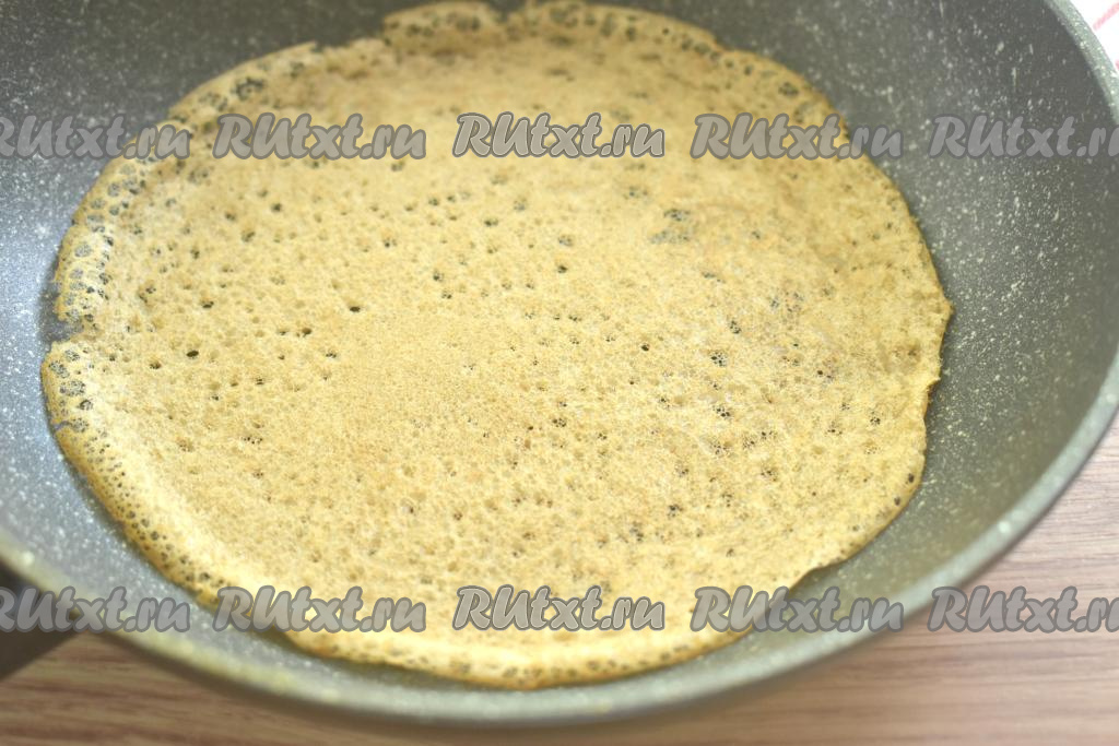 Хорошо разогреваем сковороду, смазываем её растительным маслом. Я смазывала сковороду только перед жаркой первого блинчика, так как в состав теста входит растительное масло, которого вполне достаточно, чтобы блины в дальнейшем не приставали к сковороде в процессе жарки, но многое зависит и от качества покрытия сковороды. Выливаем на сковороду половник блинного теста, равномерно распределяем и жарим блинчик на среднем огне до румяности с двух сторон (примерно по 1 минуте с каждой стороны), затем перекладываем на тарелку. Постепенно жарим все дрожжевые блины, складывая их один на другой на тарелку. Тесто в миске иногда перемешиваем.