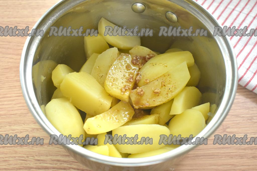 Получившийся соус переливаем к остывшему картофелю.