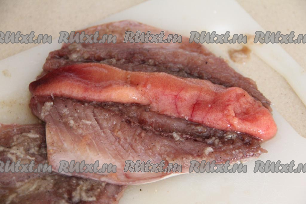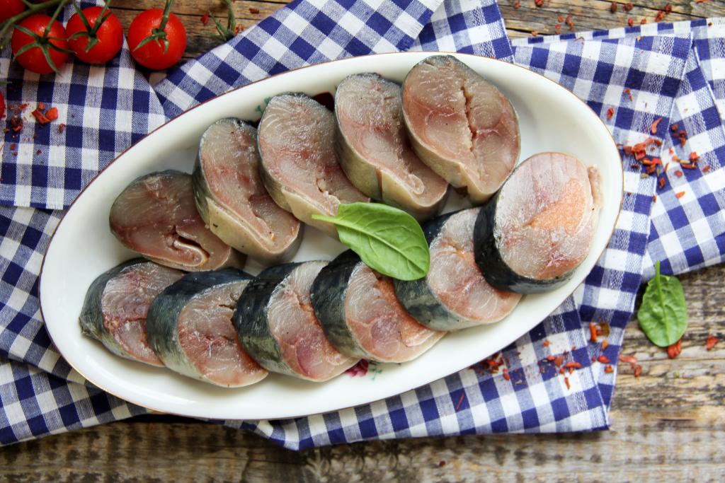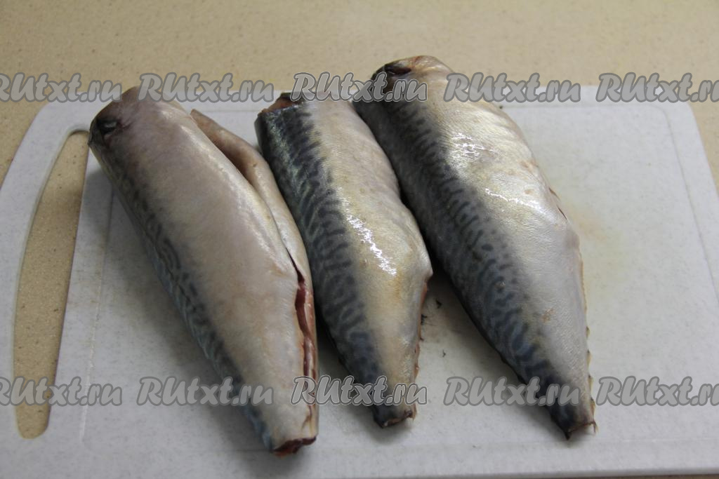 Скумбрию промыть водой, удалить голову, плавники, хвост и внутренности. Хорошо промыть брюшко и удалить чёрную плёнку.