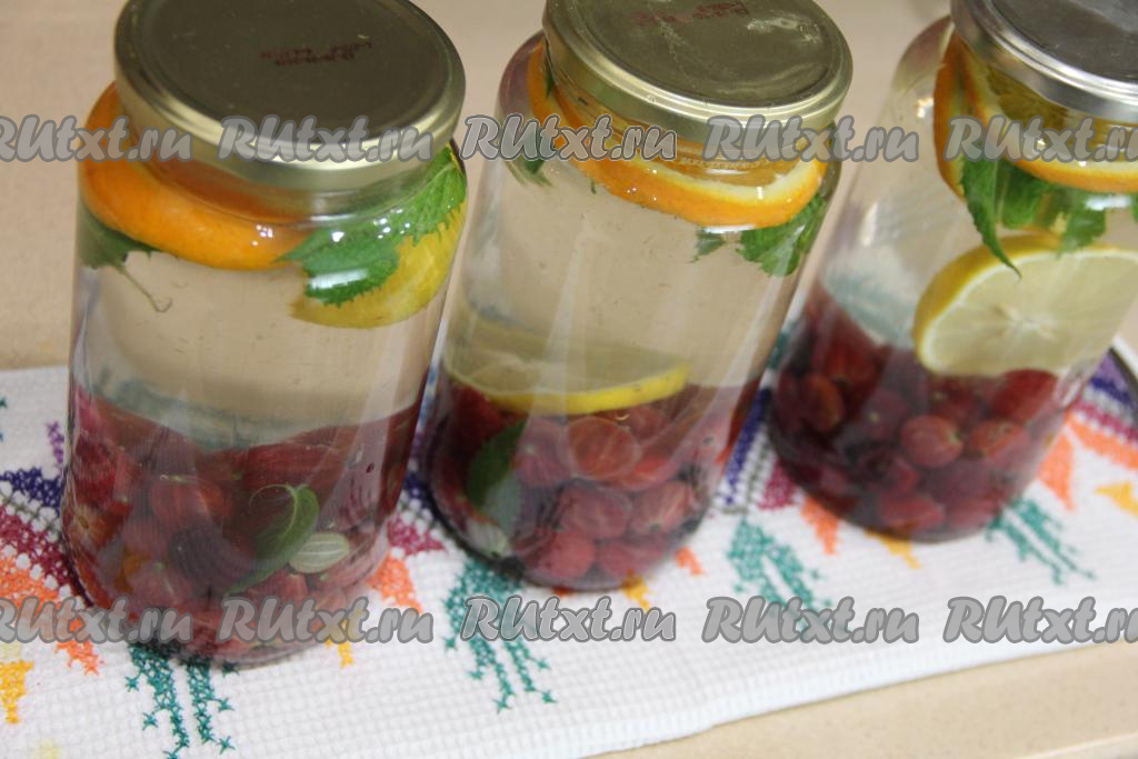 На зиму я готовлю компоты из разных ягод. Такие напитки в холодное время года радуют приятными красками, вкусом и ароматом. В этот раз решила приготовить на зиму вкусный, ароматный компот из ягод крыжовника с добавлением листочков мяты, кружочков апельсина и лимона. Рецепт компота простой, без стерилизации. При подаче этот аппетитный напиток нужно слегка разбавить водой или кубиками льда. Хранить такую заготовку следует в прохладном месте.