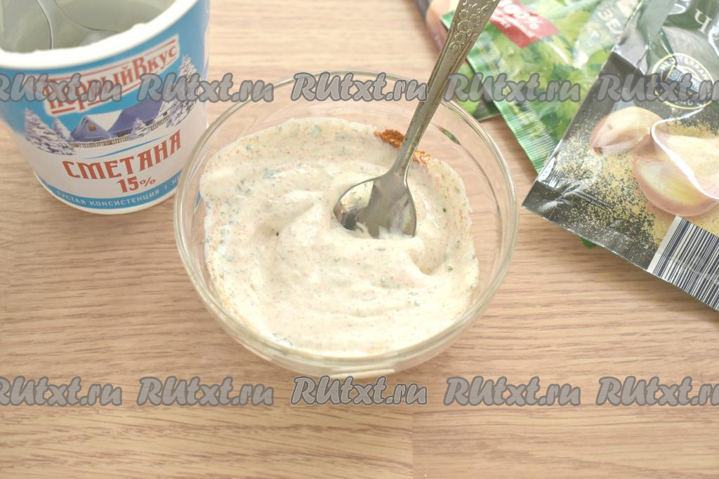 Тщательно перемешиваем сметану со специями.