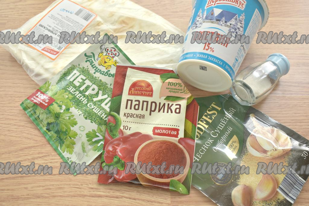 Заготовки для приготовления чипсов из лаваша делаются достаточно быстро, поэтому сразу включаем духовку и выставляем температуру 200 градусов. Вот такие ингредиенты потребуются для наших чипсов.