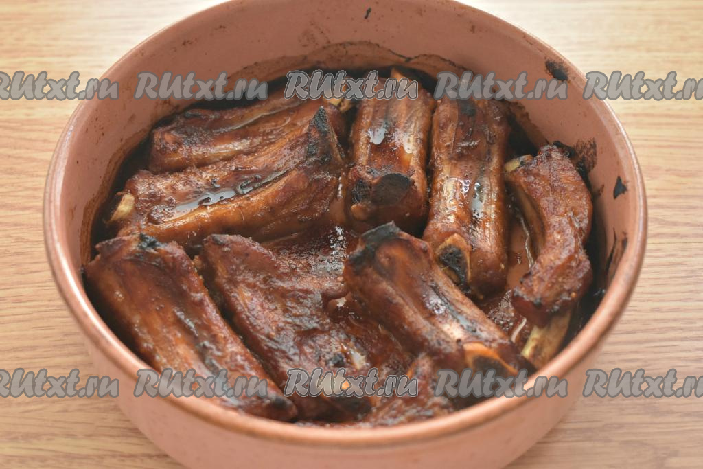 Запекаем свиные рёбра 30 минут, затем фольгу убираем и продолжаем запекать ещё 20 минут.