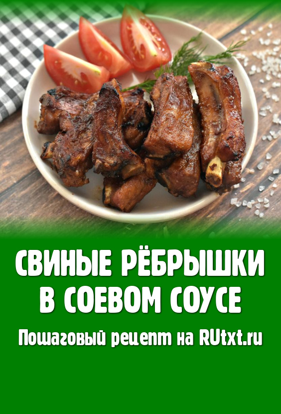Предлагаю запечь в духовке свиные рёбрышки в соевом соусе. Блюдо получается вкусным и аппетитным. Благодаря соевому соусу, свинина становится более сочной, а в процессе запекания на поверхности рёбер образуется глазурь, которая сделает их румяными и ароматными. В качестве дополнения к этому вкусному мясному блюду можно подать любимый соус, зелень, свежие овощи и гарнир (например, отварной картофель, макароны или рис).