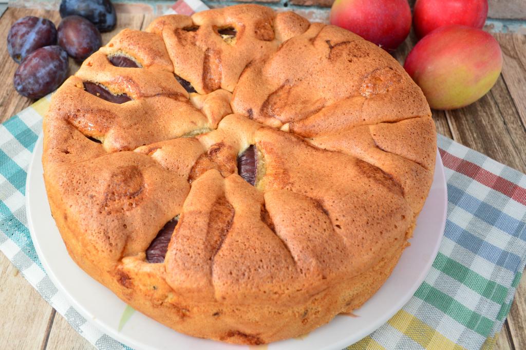 Шарлотка - простая, аппетитная выпечка. Чаще всего её готовят с яблоками. Такой пирог неизменно получается удачным, главное - хорошо взбить яйца с сахаром. В этот раз предлагаю приготовить пышную, мягкую, ароматную шарлотку с яблоками и сливами. Этот нежный, воздушный пирог с большим количеством фруктов неизменно нравится и взрослым, и деткам. Шарлотка с яблоками и сливами идеально дополнит семейное чаепитие, всем советую попробовать!