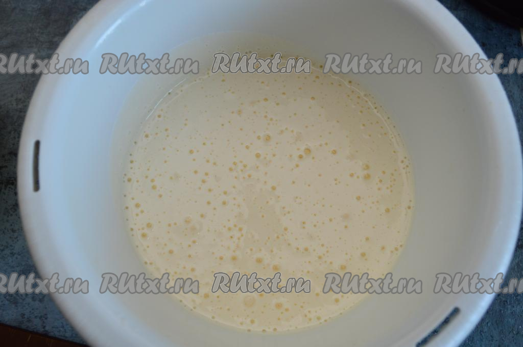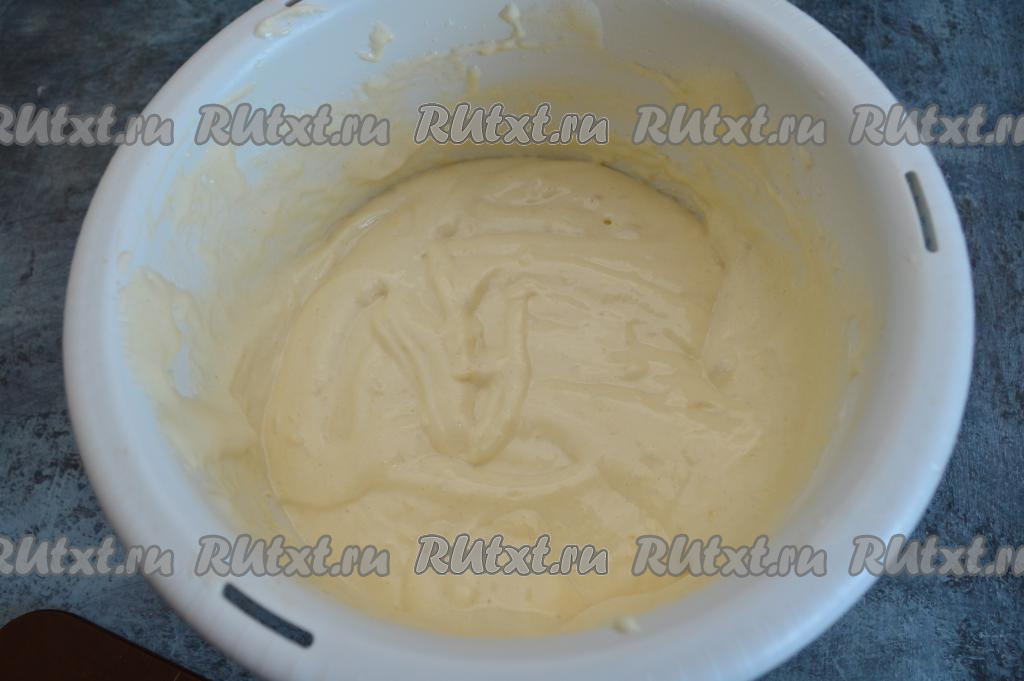 Взбейте яйца с сахаром в течение 7 минут на максимальной скорости миксера. Получится белая, очень пышная масса.