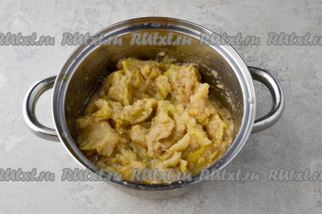Снимите кастрюлю с огня. Погружным блендером измельчите яблочную массу до пюреобразного состояния.