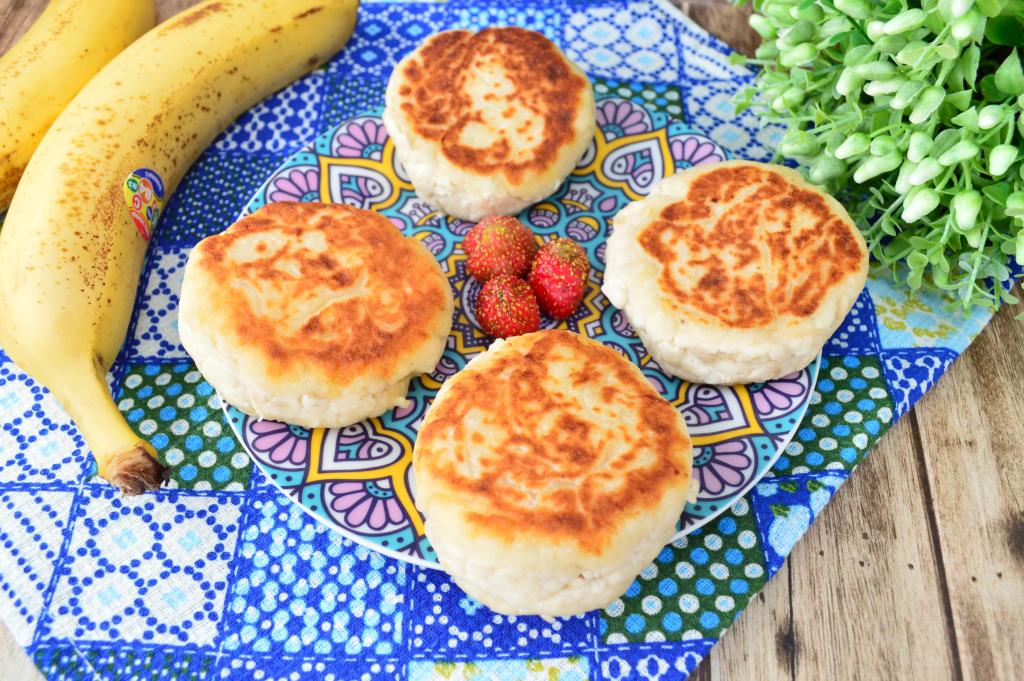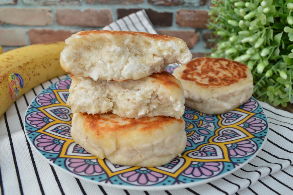 Нежные, воздушные, аппетитные сырники, приготовленные из творога с бананом и рисовой мукой, можно кушать и тёплом, и в остывшем виде, дополнив, по желанию, сметаной.