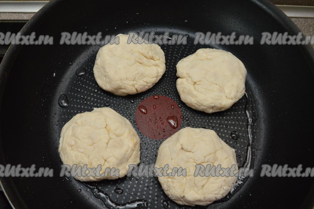 Каждый раз обмывая руки водой, сформировать все заготовки сырников. Я сформировала 4 сырника среднего размера.