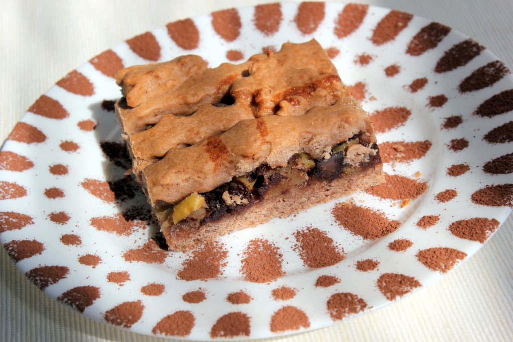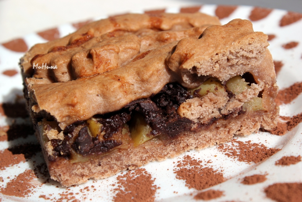 Добавляю в копилку рецептов пирогов с яблоками ещё один - шоколадно-яблочный пирог. Сначала хотела сделать и верх, и низ пирога из теста-крошки, но захотелось поэкспериментировать и поэтому верх выложен из другого вида теста, но практически из этих же ингредиентов. Делала такой шоколадно-яблочный пирог точно не в последний раз, хотя в следующий раз верх будет для разнообразия из теста-крошки.