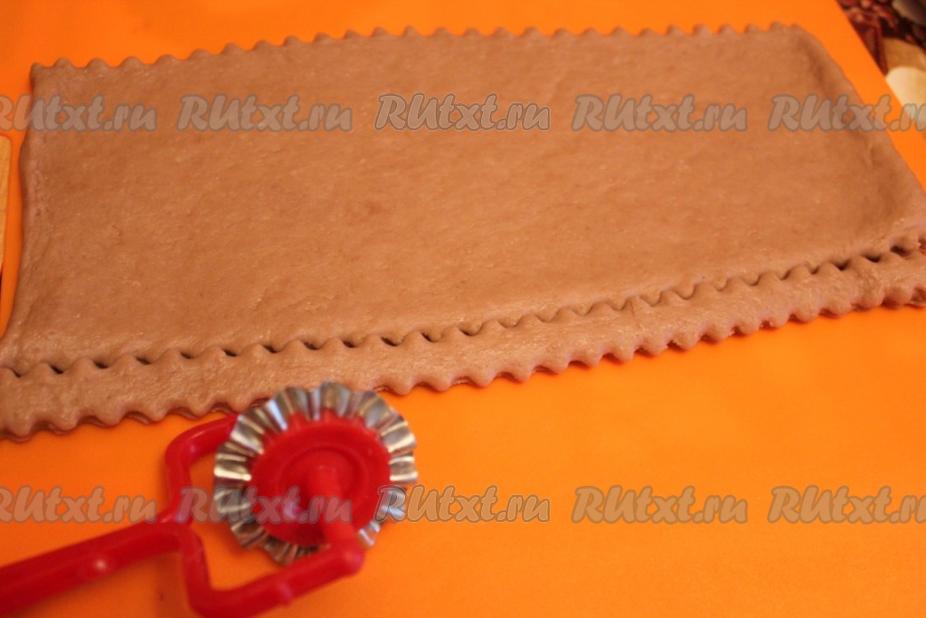 Эластичное тесто раскатать и нарезать на полоски или фигурки.