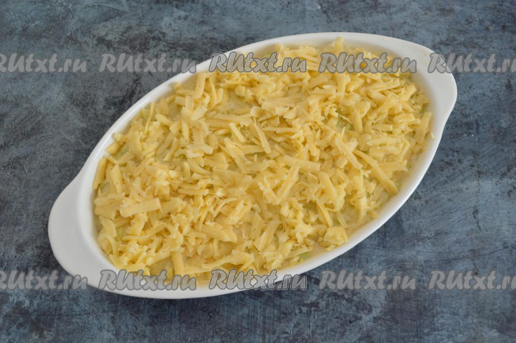 Оставшийся натёртый сыр равномерно разложить поверх запеканки.