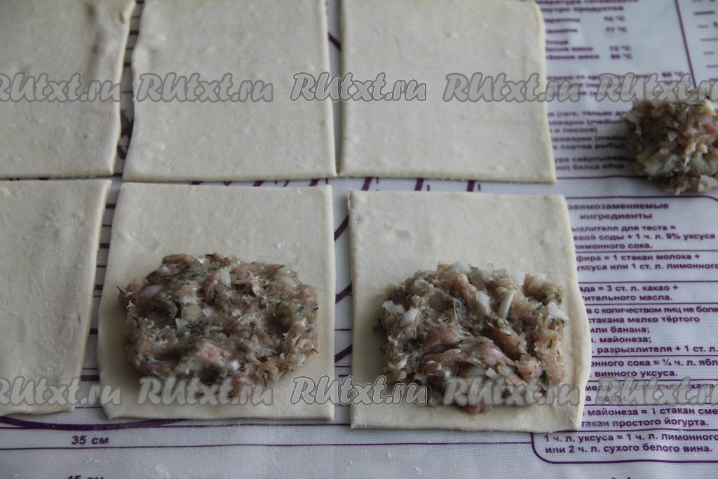 Выпечка из слоёного теста очень разнообразна. В этот раз предлагаю испечь нежные, вкусные, аппетитные пирожки с фаршем из покупного слоёного теста. Фарш можно взять любой, в этот раз я сделала куриный фарш. Такие пирожки прекрасно насыщают, радуют приятным вкусом и ароматом, а готовятся они очень просто и быстро!