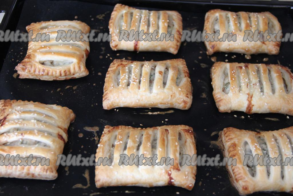 Нежные, приятно похрустывающие пирожки с фаршем достать из духовки, дать немного остыть и можно подавать к столу. Такая выпечка из слоёного теста готовится очень просто, а получается и аппетитной, и вкусной, и сытной.